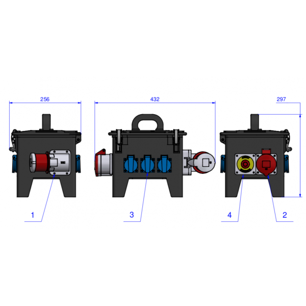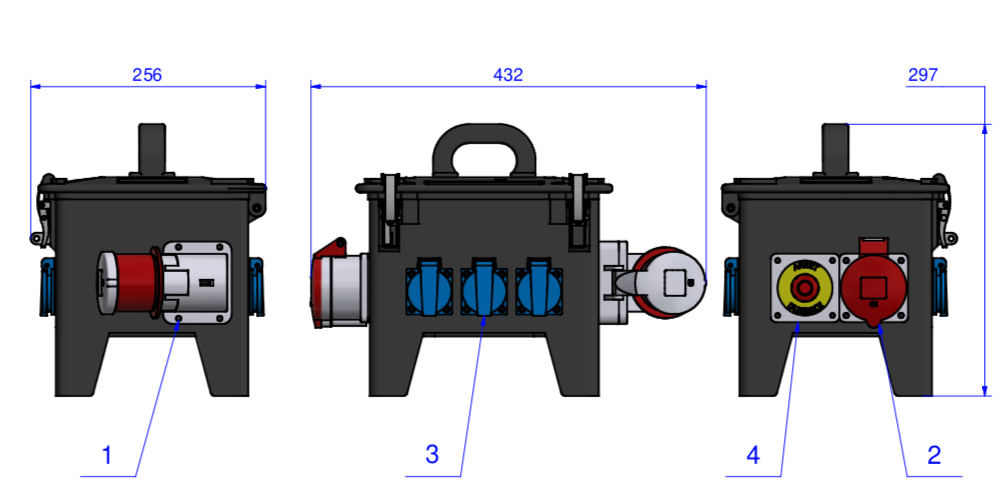 BALS - Boitier d'alimentation 1 tétra 32A 6 mono 16A avec bouton d'arrêt d'urgence (Neuf)