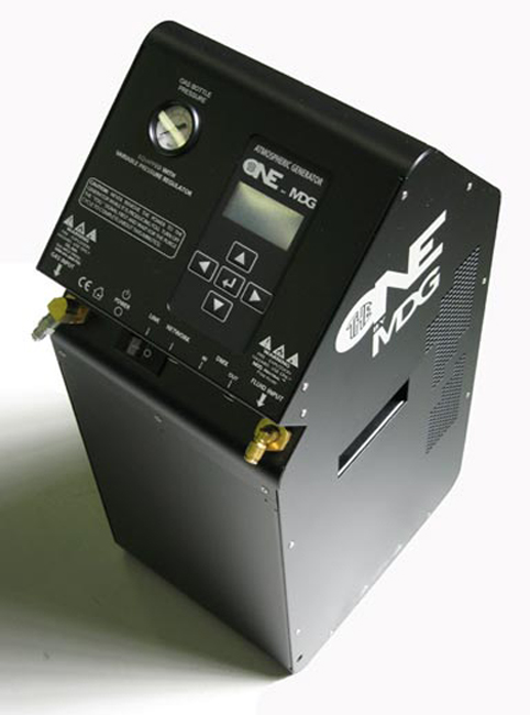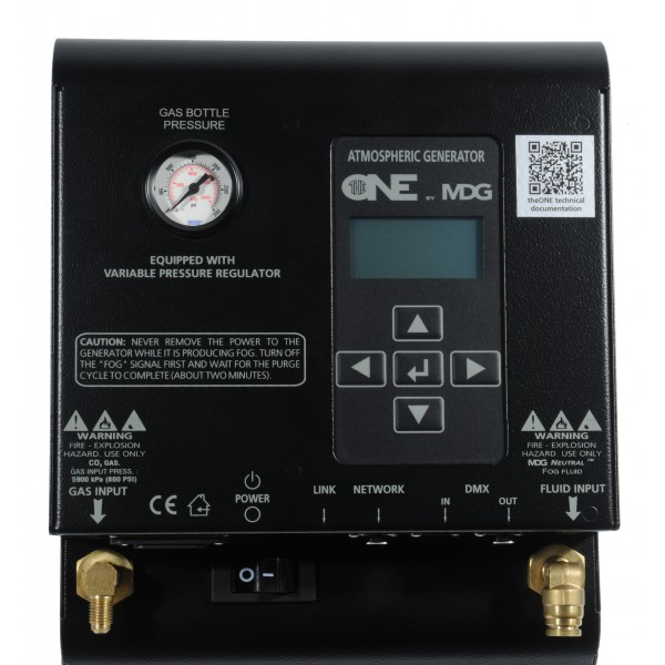 The theONE™ is a revolutionary, fully digital, dual mode fog/haze atmospheric generator. For the first time, this completely self-contained package (touring version) offers sophisticated control over atmospheric effects from a single source. Its simpleand efficient multi-level user interface, accessible from the backlit LCD panel, allows a simple switch between either mode seamlessly using various networking protocols. Each parameter is set into specific presets, but can be accessed and redefinedby advanced users. The networking capability of the MDG theONE™ allows the user to install the generator as part of an existing ACN network. Automatically refilling from an external 20 l (5.3 US gal) fluid container and with the two interconnected 9kg (20 lb) CO2 or N2 gas bottles, theONE™ was especially designed to give a maximum of consecutive, non-stop hours of fog/haze without service. With the generator and its accessories (DMX fan, tool compartment) sitting in separate spaces in the optional rolling rack (touring version), for easier storage and transportation, the sturdy aluminium rack provides several rigging options for maximum freedom, making the MDG theONE™ especially fit for ready-to-go worldwide touring conditions. In a word, like in a thousand – theONE™… and only atmospheric generator you’ll ever need.