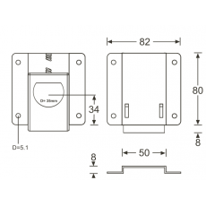 Stock JSF 2,40 € TTC 2,00 € HT ADAM HALL - Arrêtoir de couvercle grand avec charnière avec passage de profilé (Neuf)