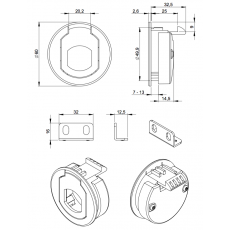 Stock JSF 5,56 € TTC 4,63 € HT ADAM HALL - Fermeture papillon V3 grande avec passage de profilé - Cuvette 14mm (Neuf)