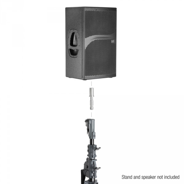 une enceinte sur un pied à manivelle avec goujon TV28.