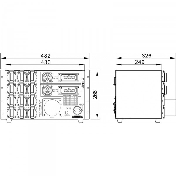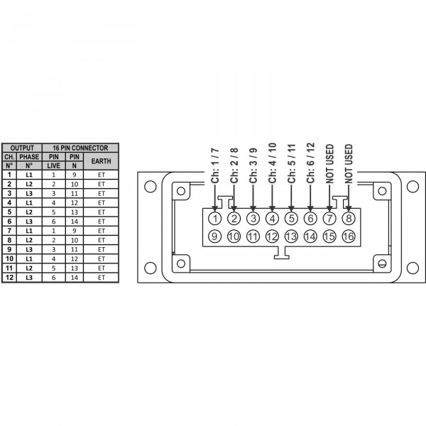 - 12x prises de sortie secteur avec terre 16 A
