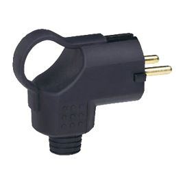 Prise Mâle coudée noire en caoutchouc CEE 250V - 16A - 2 contacts