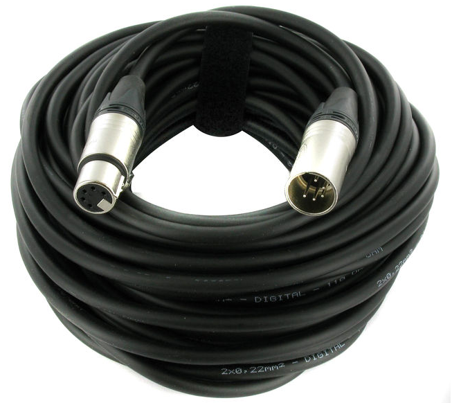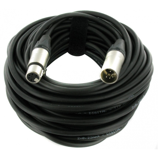 Câble PRO Sommer noir ultra souple DMX AES/EBU 110 ohms avec connecteurs XLR 5 broches NEUTRIK noir équipé d'une bague de repérage indiquant DMX + 10m afin de différencier facilement les câbles Audio des câbles DMX.