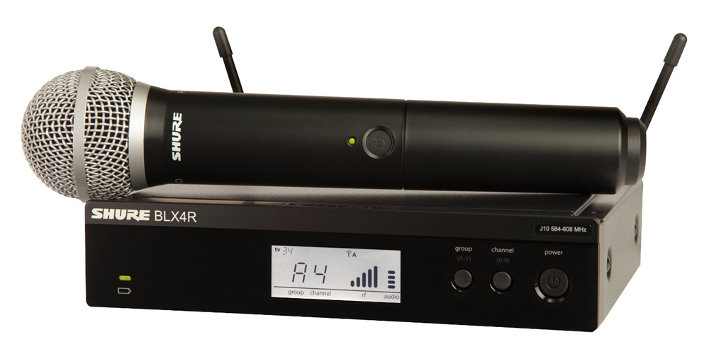 Composé d'un récepteur BLX4R, d'un émetteur main BLX2 équipé d'une capsule dynamique cardioïde PG58 et d'une pince micro WA371.