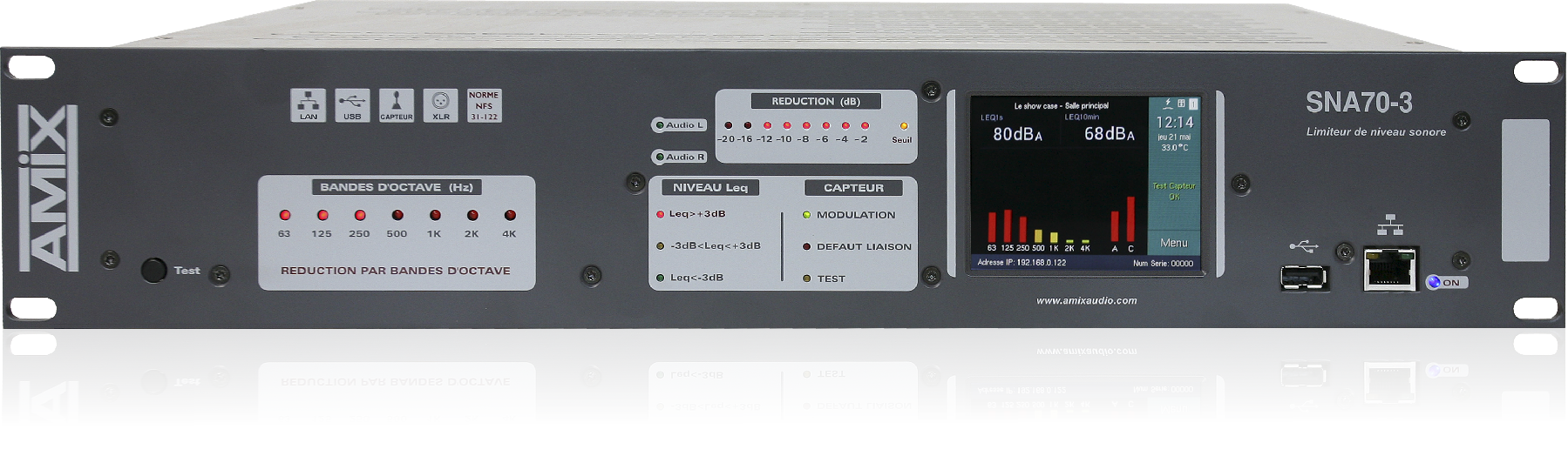 AMIX - Limiteur de niveau sonore SNA70-3 Rack 19" - 2U + 1 CAP65 + 1 RJV30 + 1 AFF17 (Neuf)