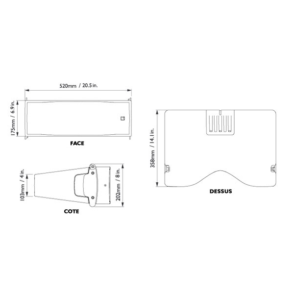 L x H/h x P : 520 x 175/103 x 358 mm