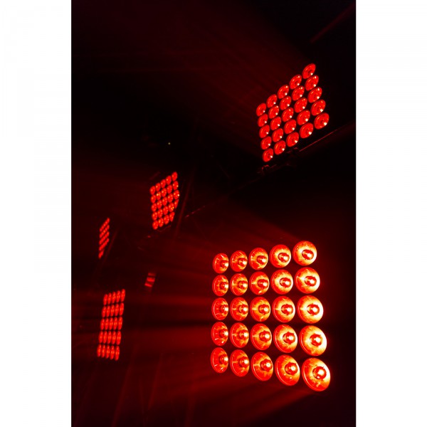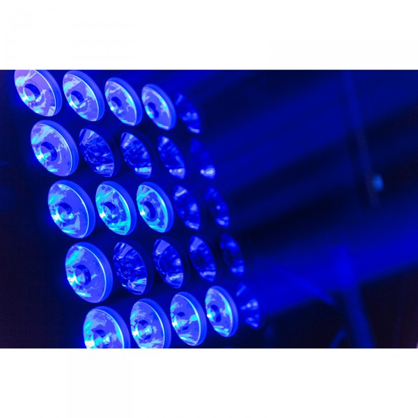 - Ce projecteur est équipé de 25 lentilles très étroites et extrêmement efficaces de 4,5°, combinées avec des LED RGBW fiables et puissantes de 15 W.