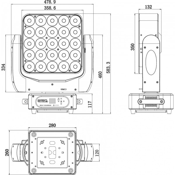 - Toute la puissance et les fonctions de notre BEAM MATRIX5x5-RGBW sont maintenant aussi disponibles dans ce projecteur compact "panneau mobile" !