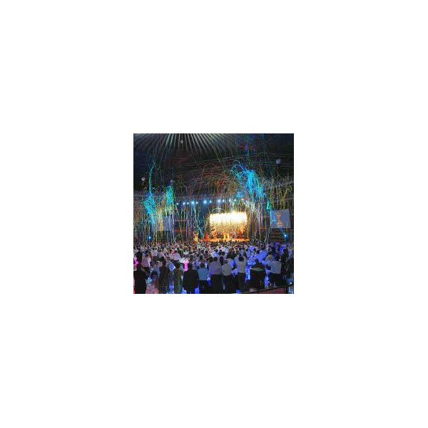 - Serpentins propulsés jusque 20 m, confettis jusque 12 m