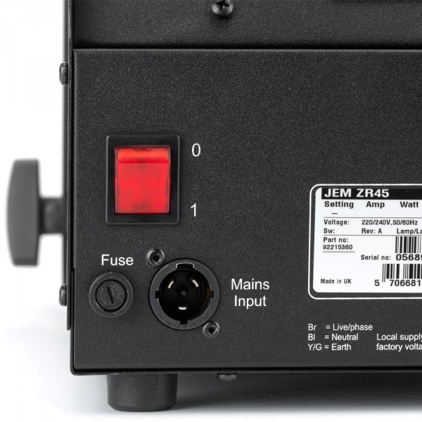 Le robuste encore poids optimisé JEM ZR45 dispose également d'un contrôle de sortie variable pour des effets plus subtils et est entièrement mis à jour avec télécommande numérique, DMX et RDM.
