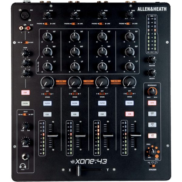 La Xone:43 a spécialement été conçue pour le DJ et les amateurs de musique électronique. Les DJ ayant déjà mixé sur les modèles numériques DB2 et DB4, se sentiront à l'aise avec cette console à 4 voies. Cependant, la Xone:43 est une console analogique, pourvue d'un filtre VCF avec fonction passe-haut, passe-bas et passe-bande, contrôle de résonance et de la fréquence de balayage. Fonctions que l'on retrouve également sur la référence des consoles de mixage, la Xone:92.